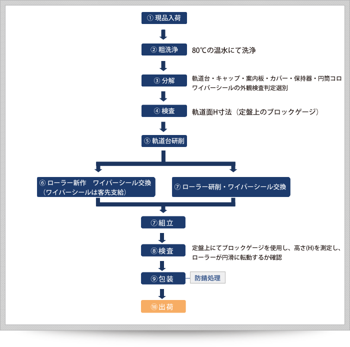 各種設備の旋回ベアリングやロータリーシャーなどの使用されているローラーウェイの再生・修理を行います。