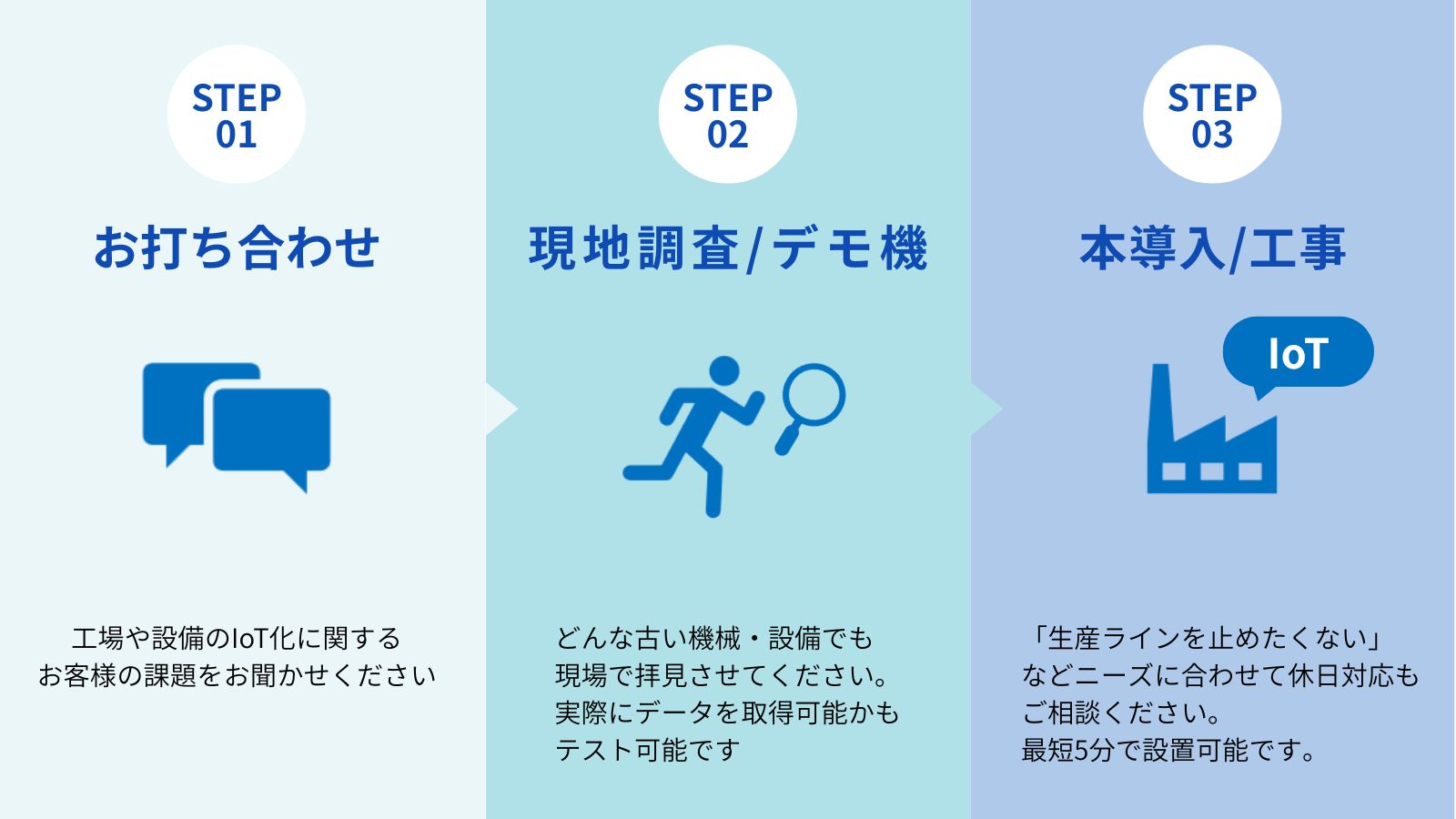特定の設備1台、あるいは1ラインから試験導入を行い、実際の効果(ROI)を検証します。