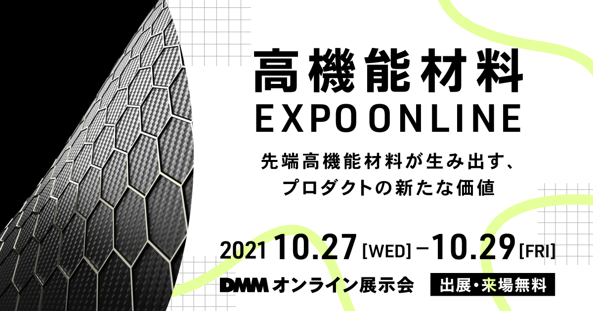 当社は、2021年10月27日(水)〜29日(金)に合同会社DMM.comがオンラインで開催する『DMMオンライン展示会「高機能材料 EXPO ONLINE ~先端高機能材料が生み出す、プロダクトの新たな価値~」』に出展いたします。