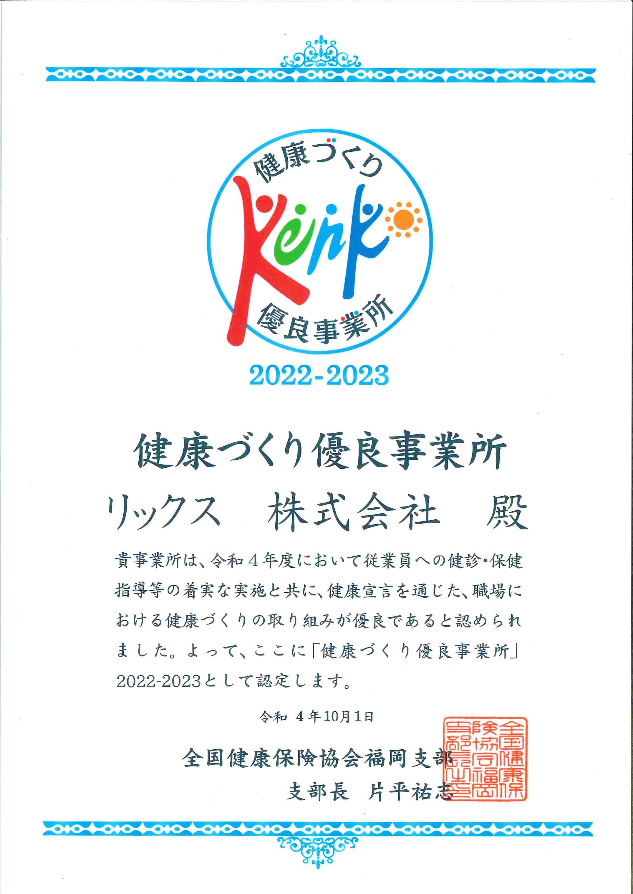 当社はこの度、全国健康保険協会(福岡支部)の取り組みである「健康づくり優良事業所」の認定企業となりました。従業員の健康維持や促進に努めた企業を全国健康保険協会(各県支部)が認定するもので、下図で示した7項目が認定基準です。