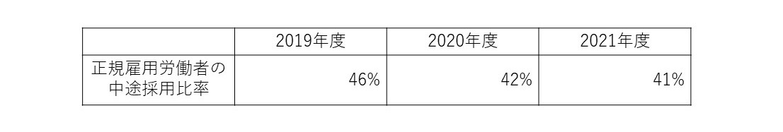 労働施策総合推進法に基づき、当社の直近3事業年度の中途採用比率を以下のとおり公表します。