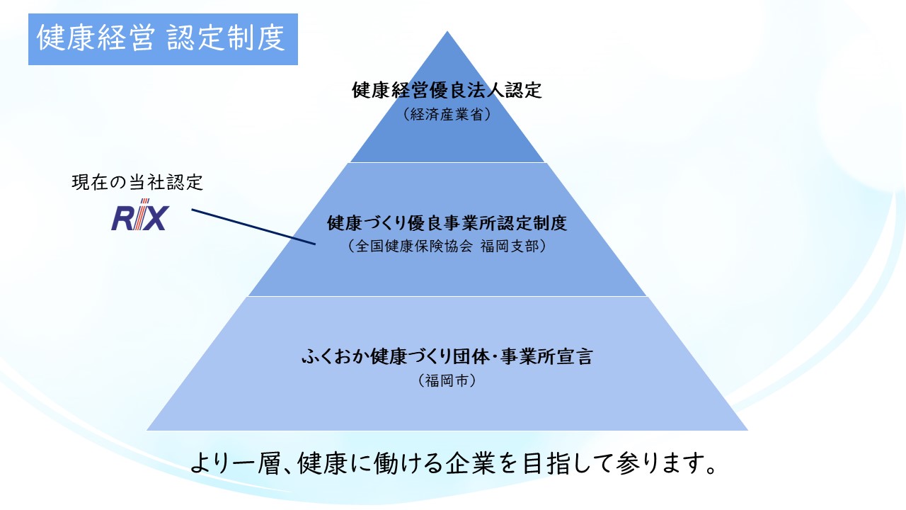 今回の登録は、企業の健康経営を認定する「健康経営優良法人認定」(経産省)を受けるための第2段階になります。今後、「健康経営優良法人認定」を得るため、当社では健康管理アプリの導入やウォーキングイベントの企画、ストレスチェックの全社実施などを進めていく予定です。