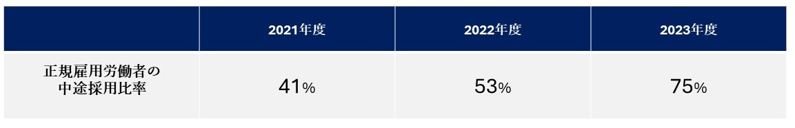 労働施策総合推進法に基づき、当社の直近3事業年度の中途採用比率を以下のとおり公表します。