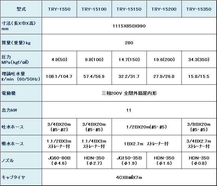 仕様(15馬力 高圧洗浄機)